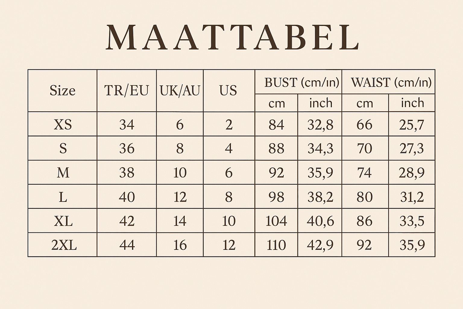 Twijfel je over de maat? Stuur ons een berichtje en we helpen je snel!